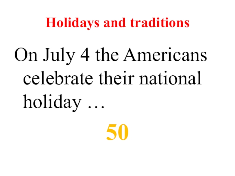 Holidays and traditionsOn July 4 the Americans celebrate their national holiday …50