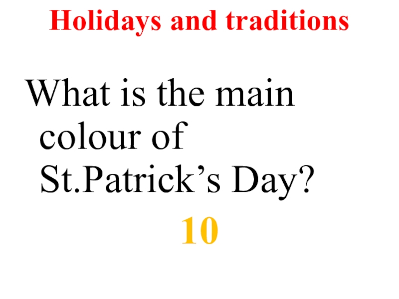 Holidays and traditions  What is the main colour of St.Patrick’s Day?10