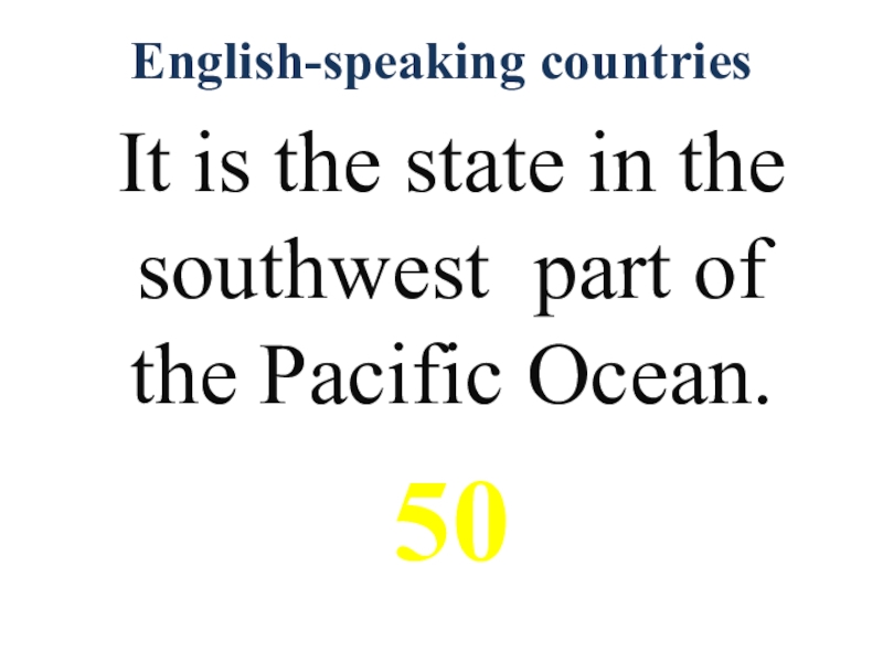 English-speaking countries It is the state in the southwest part of the Pacific Ocean.50