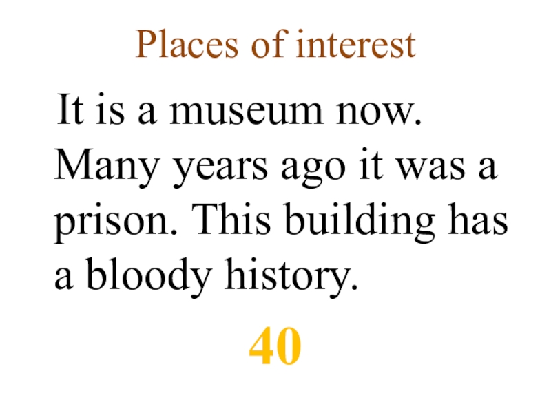 Places of interest It is a museum now. Many years ago it was a prison. This building