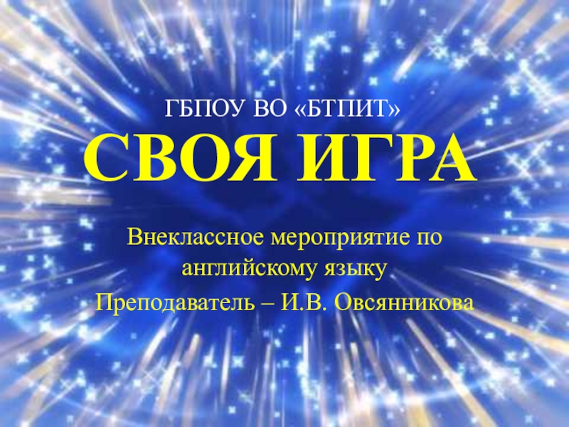 Внеклассное мероприятие по английскому языкуПреподаватель – И.В. ОвсянниковаГБПОУ ВО «БТПИТ»СВОЯ ИГРА