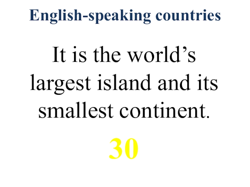 English-speaking countries It is the world’s largest island and its smallest continent. 30