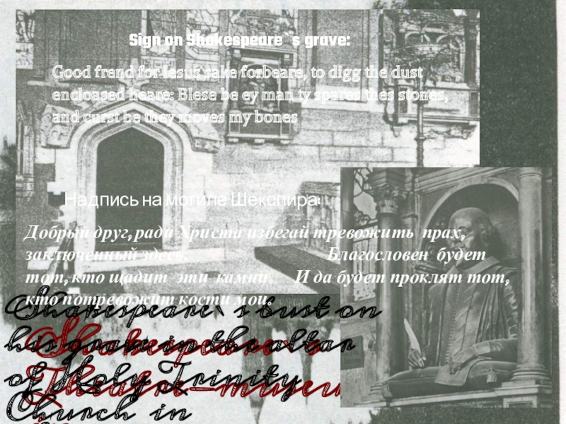 Надпись на могиле Шекспира: