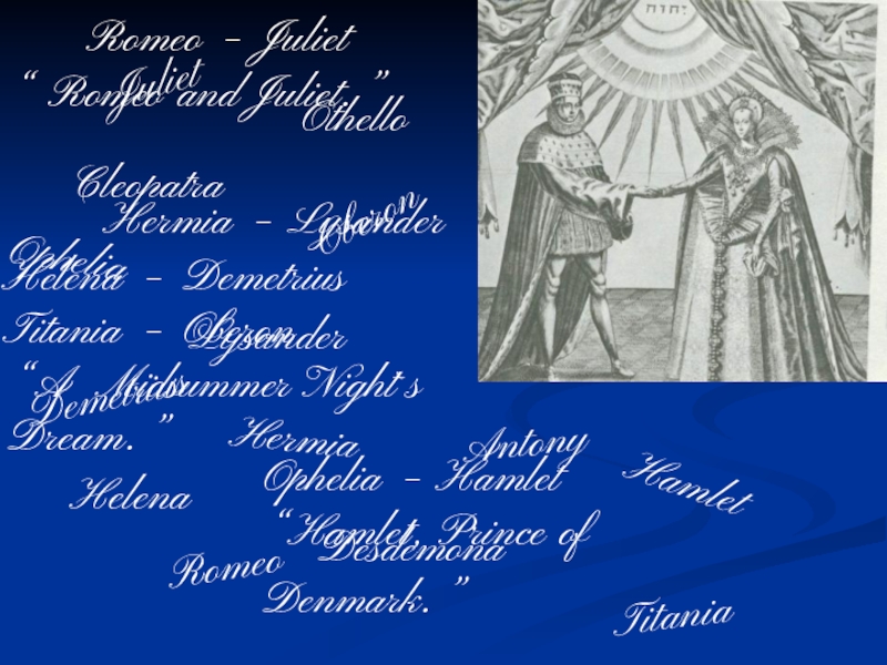 Hermia – Lysander Helena – Demetrius Titania – Oberon “A Midsummer Night`s Dream.”