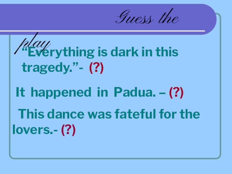Romeo – Juliet “ Romeo and Juliet.”