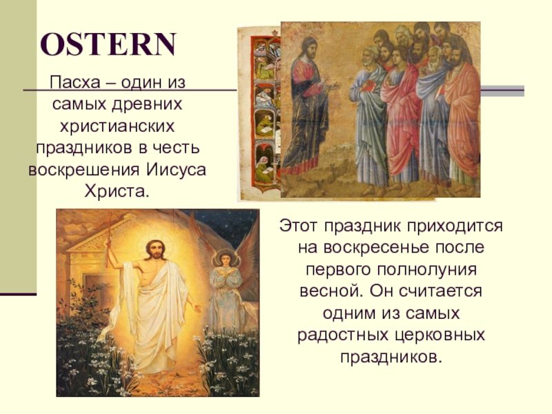 Этот праздник приходится на воскресенье после первого полнолуния весной. Он считается одним из самых радостных церковных праздников.