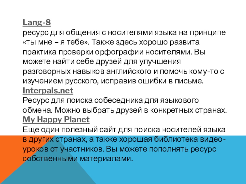 Это сайт презентаций, где можно хранить и обмениваться своими презентациями, докладами, проектами, шаблонами в формате PowerPoint с другими пользователями. Мы помогаем школьникам, студентам, учителям, преподавателям хранить и обмениваться учебными материалами.