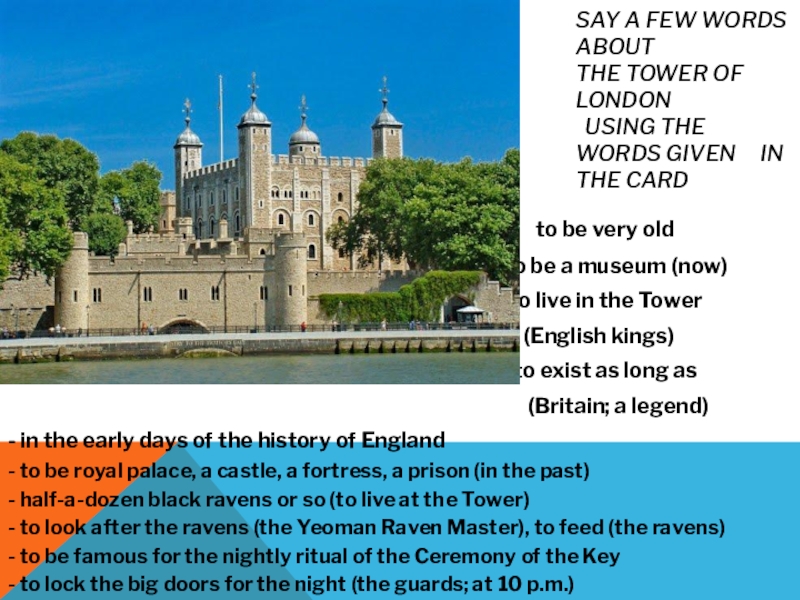 - to look after the ravens (the Yeoman Raven Master), to feed (the ravens)