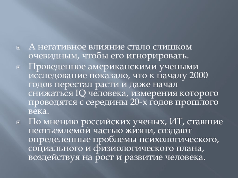 Слайд 2А негативное влияние стало слишком очевидным, чтобы его игнорировать.