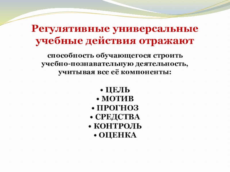 Слайд 13Регулятивные универсальные