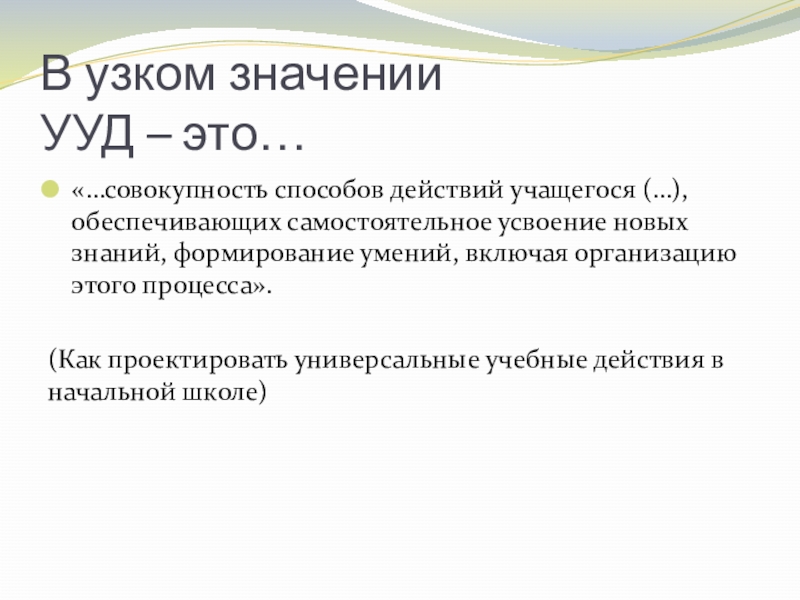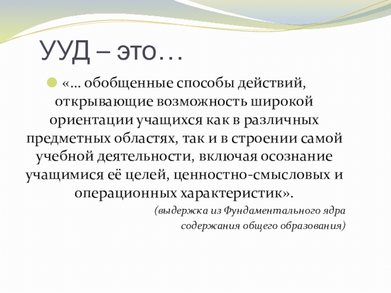 «… обобщенные способы действий, открывающие возможность широкой ориентации учащихся
