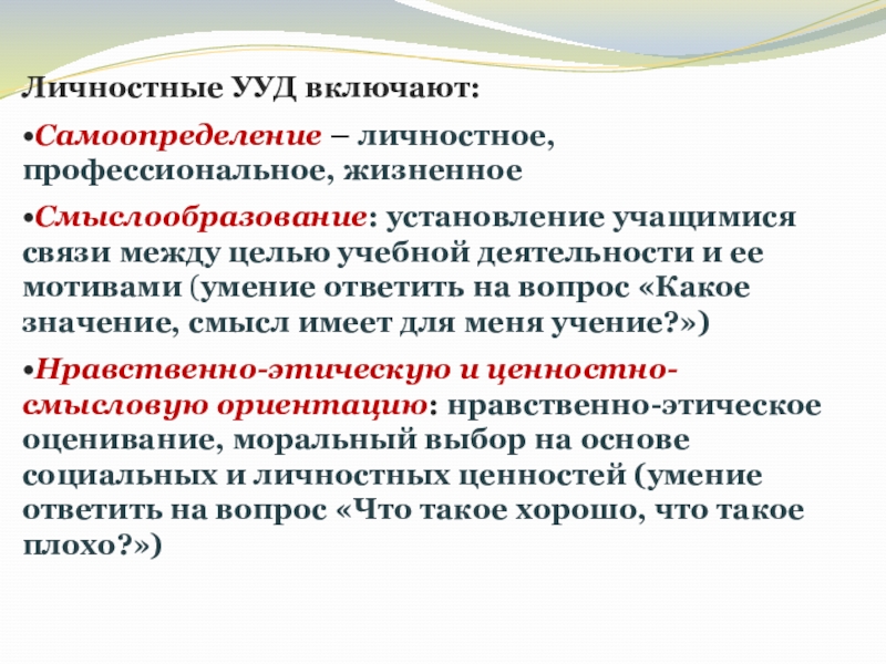 УУД - Самоопределение – личностное,