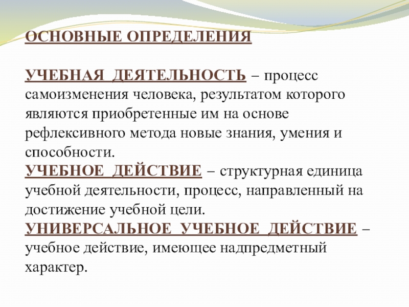 УЧЕБНАЯ ДЕЯТЕЛЬНОСТЬ − процесс самоизменения человека, результатом которого являются приобретенные