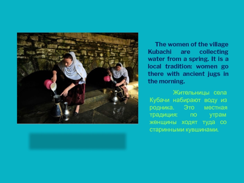Жительницы села Кубачи набирают воду из родника. Это местная традиция: по утрам женщины ходят туда со старинными кувшинами.