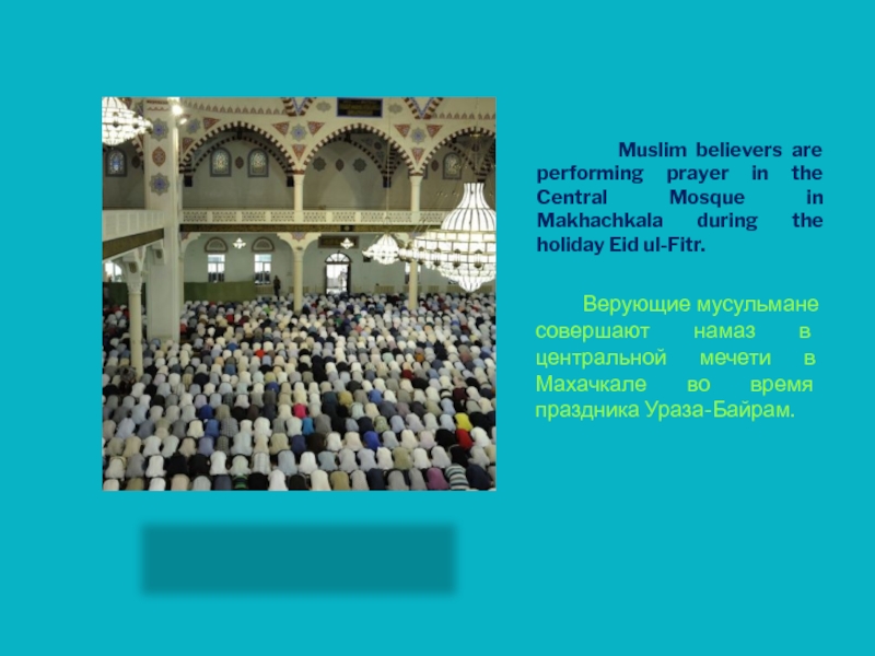 Верующие мусульмане совершают намаз в центральной мечети в Махачкале во время праздника Ураза-Байрам.
