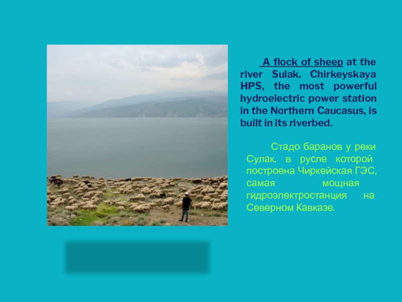 Стадо баранов у реки Сулак, в русле которой построена Чиркейская ГЭС, самая мощная гидроэлектростанция на Северном Кавказе.