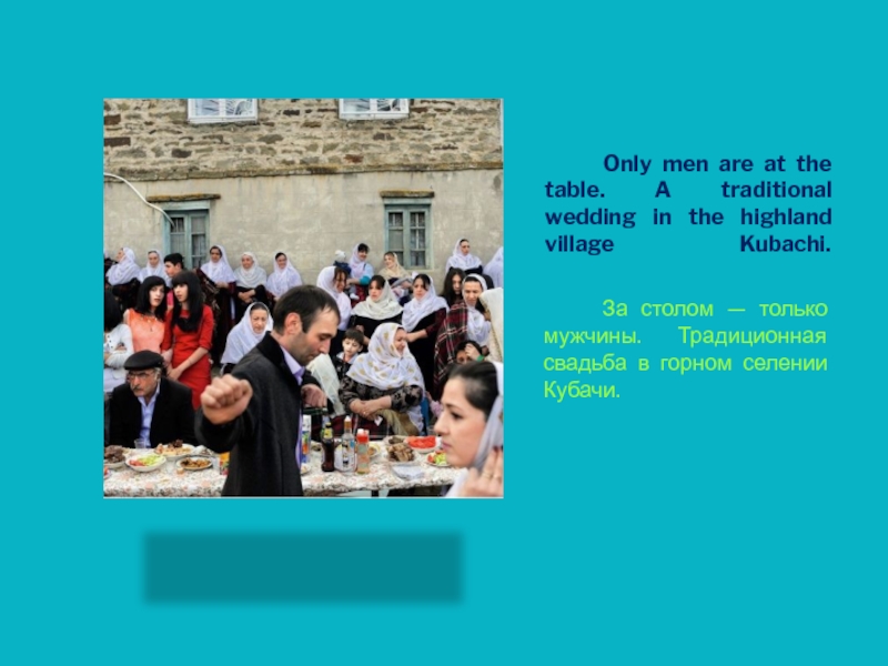 За столом — только мужчины. Традиционная свадьба в горном селении Кубачи.