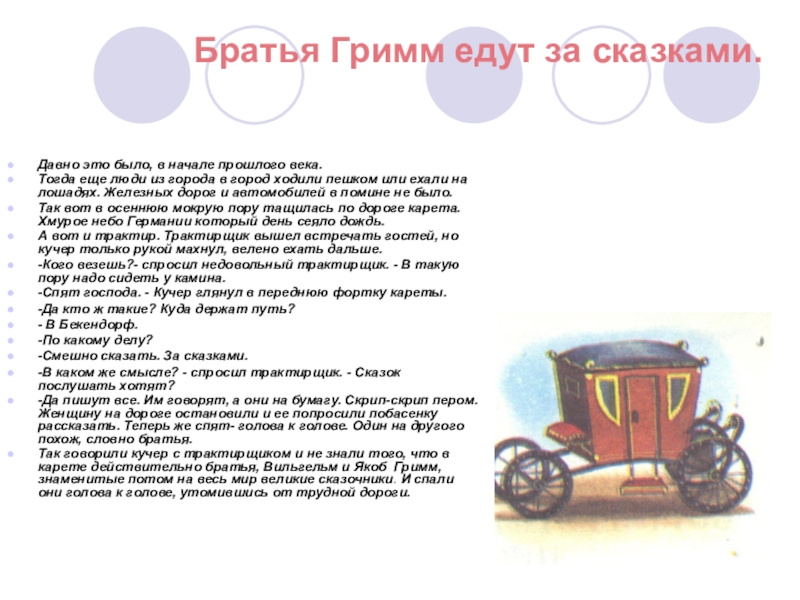 Слайд 3Братья Гримм едут за сказками.