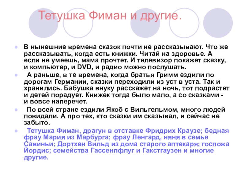 Слайд 4Тетушка Фиман и другие.