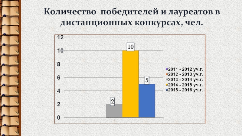 Слайд 32Количество победителей и лауреатов в дистанционных конкурсах, чел.