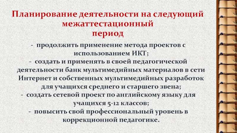 Слайд 48Планирование деятельности на следующий межаттестационный