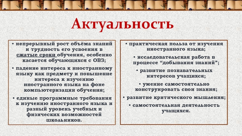 непрерывный рост объёма знаний и трудность его усвоения в сжатые сроки