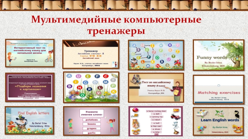 2. Разработать мультимедийные тренажеры для уроков английского языка с целью развития интереса к предмету, а также мелкой моторики у учащихся с НОДА; создать банк мультимедийных разработок к урокам английского языка по учебным темам.