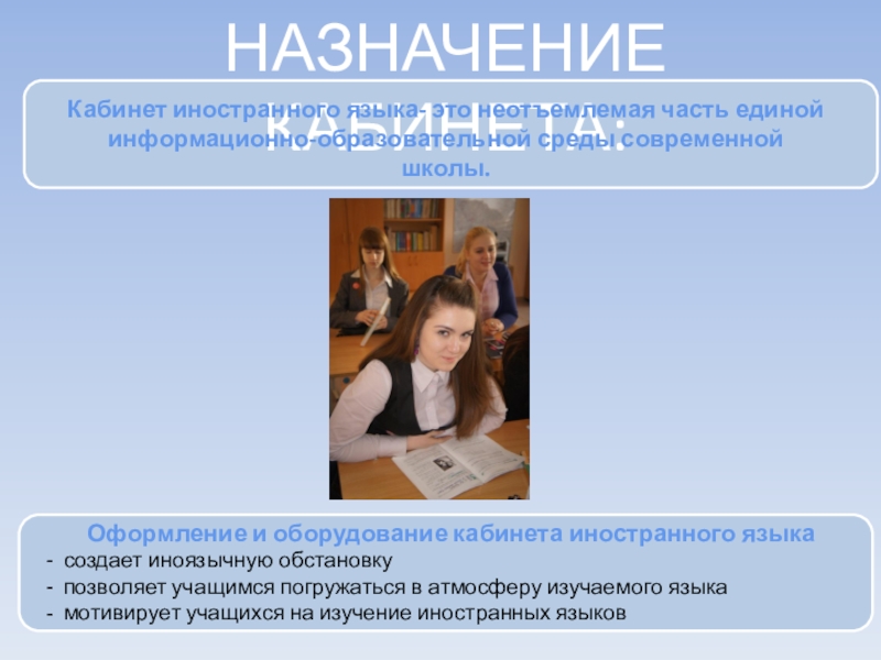 - позволяет учащимся погружаться в атмосферу изучаемого языка