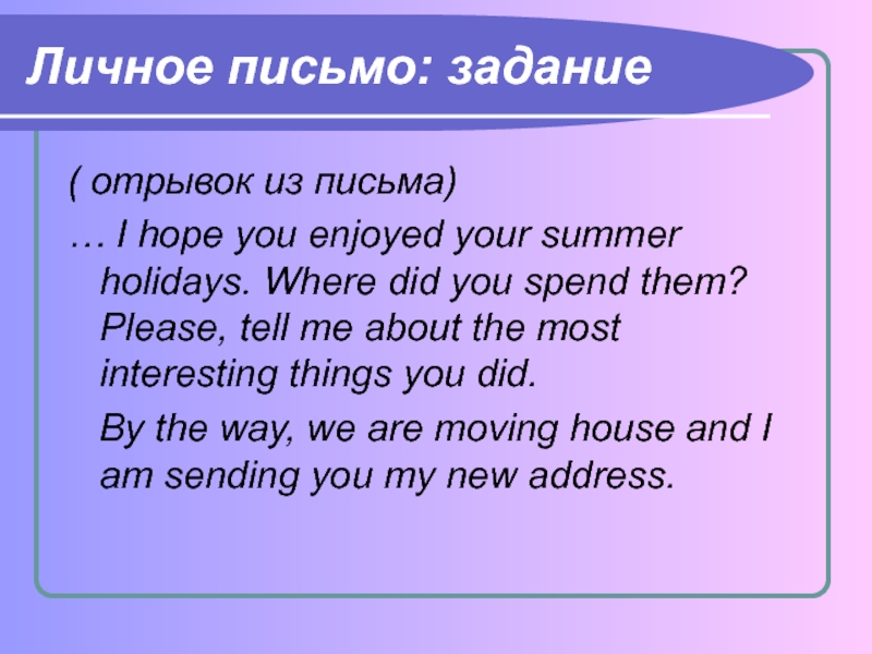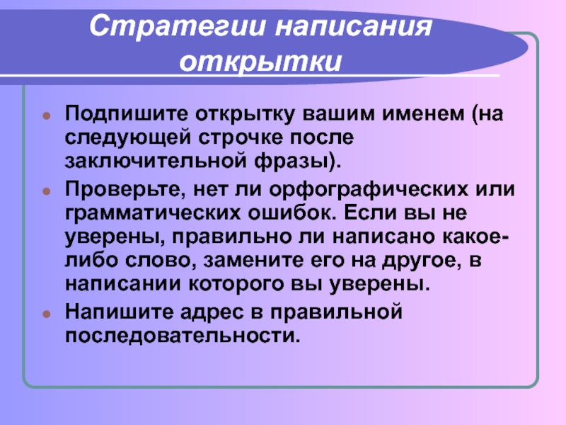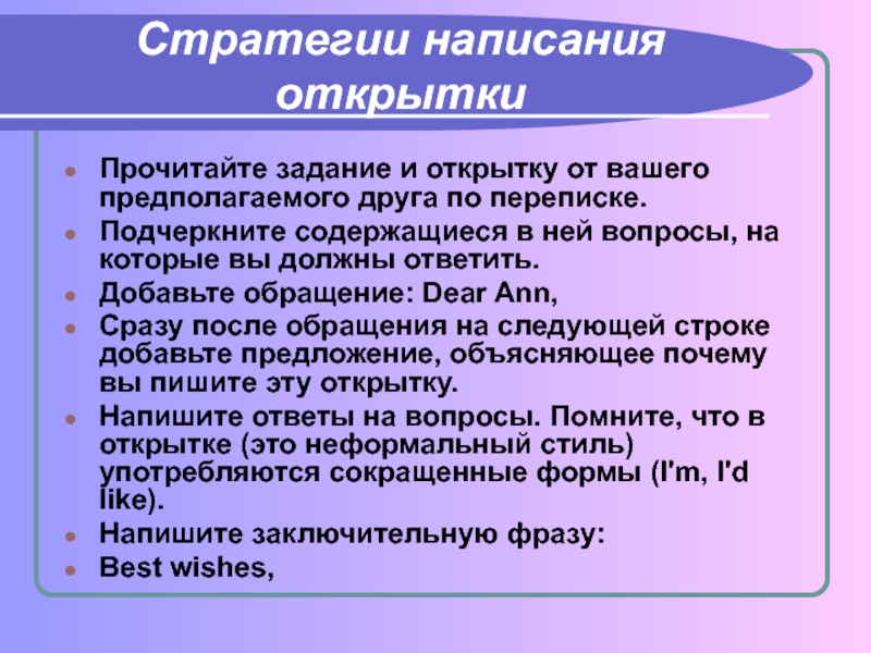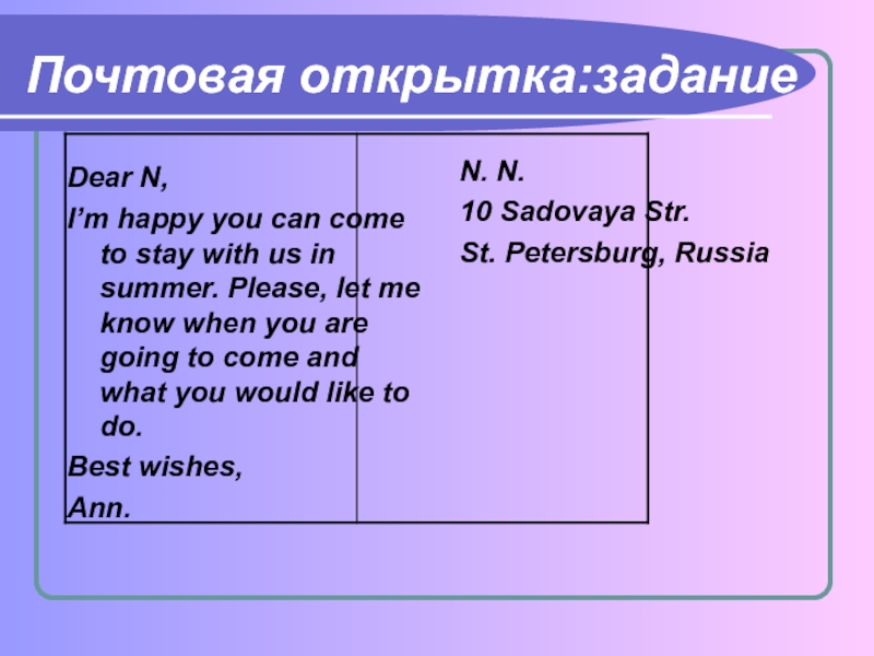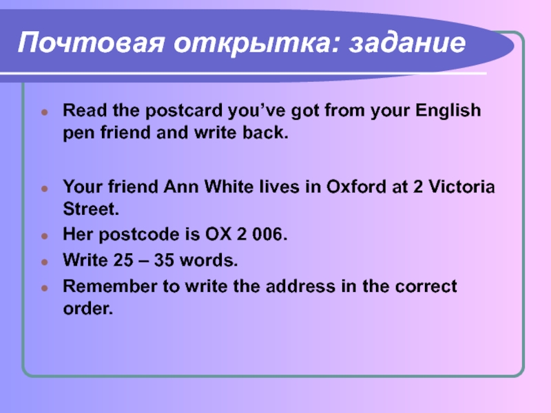 Прочитайте задание и открытку от вашего предполагаемого друга
