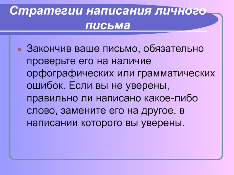 Закончив ваше письмо, обязательно проверьте его на наличие