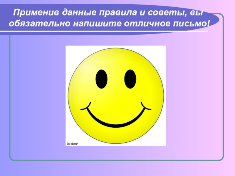 Слайд 23Применив данные правила и советы, вы обязательно напишите отличное письмо!