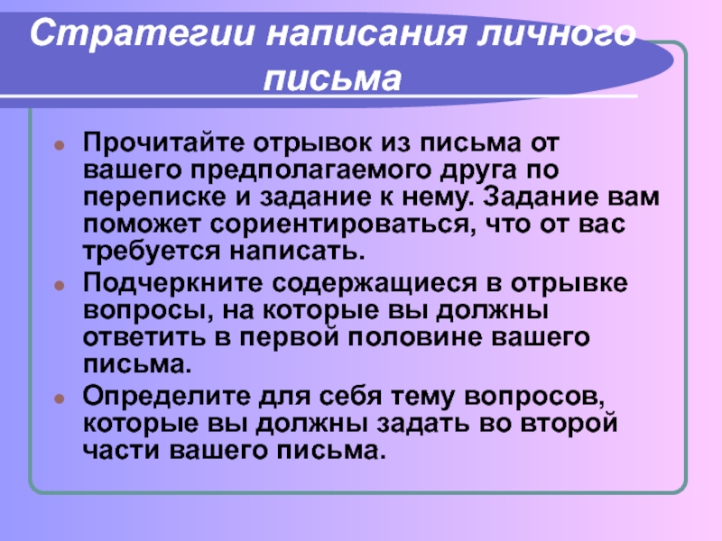 Прочитайте отрывок из письма от вашего предполагаемого друга