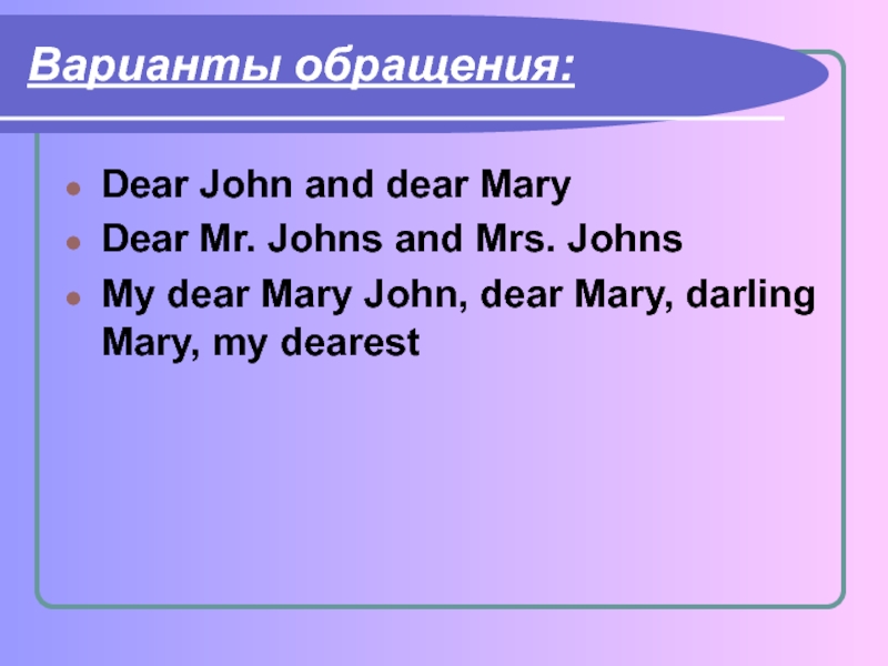 2. Всё обращение пишется не посередине, а на левой стороне без отступа на красную строку.