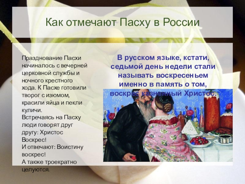 В русском языке, кстати, седьмой день недели стали называть воскресеньем именно в память о том, воскрес казненный Христос.