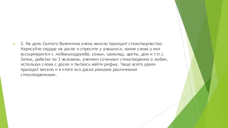 2. На день Святого Валентина очень весело проходит стихотворчество. Нарисуйте сердце на доске и спросите у учащихся,