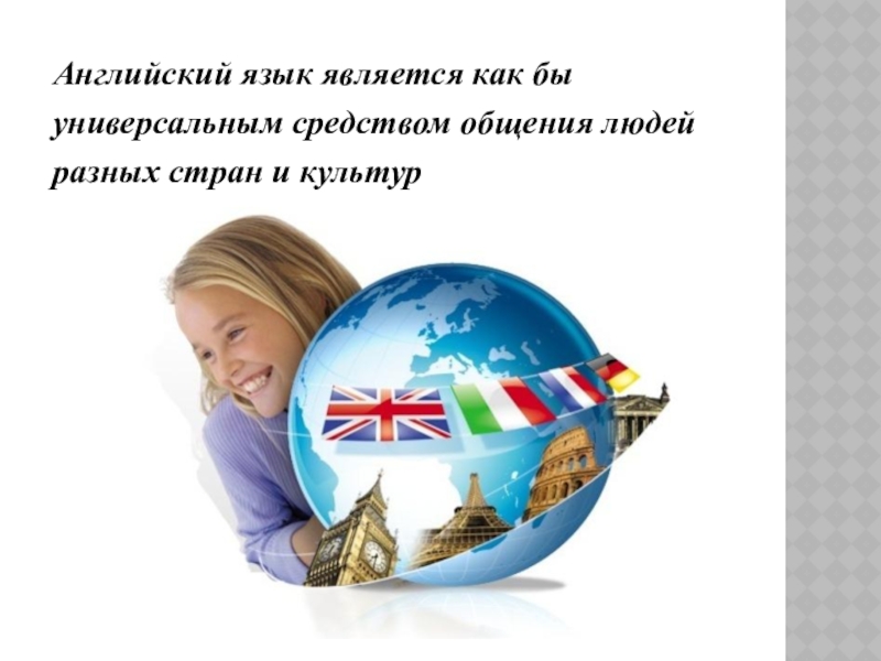 Английский язык является как быуниверсальным средством общения людейразных стран и культур