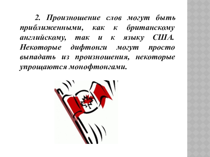Слайд 7 2. Произношение слов могут быть приближенными, как к британскому