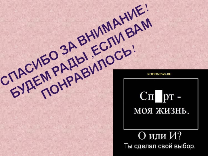 Слайд 10СПАСИБО ЗА ВНИМАНИЕ! БУДЕМ РАДЫ ,ЕСЛИ ВАМ ПОНРАВИЛОСЬ!