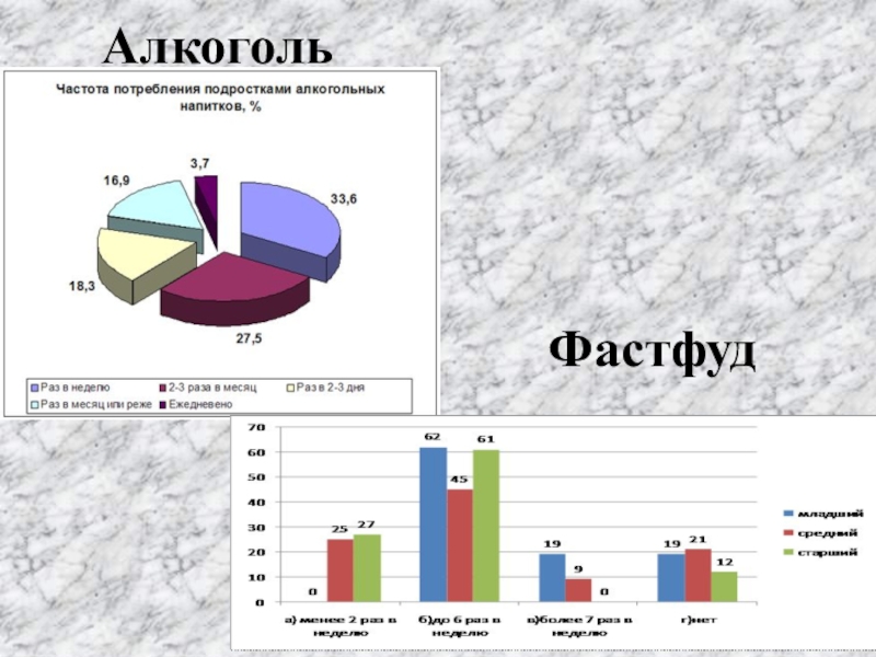 КУРЕНИЕ : ЗА (46) Против(72) АЛКОГОЛЬ: ЗА (52) Против (66) НАРКОТИКИ: ЗА (18) Против (100) ФАСТФУД: ЗА(103) Против (15)