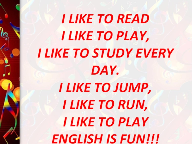 I LIKE TO READI LIKE TO PLAY,I LIKE TO STUDY EVERY DAY.I LIKE TO JUMP, I LIKE