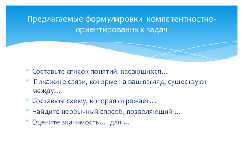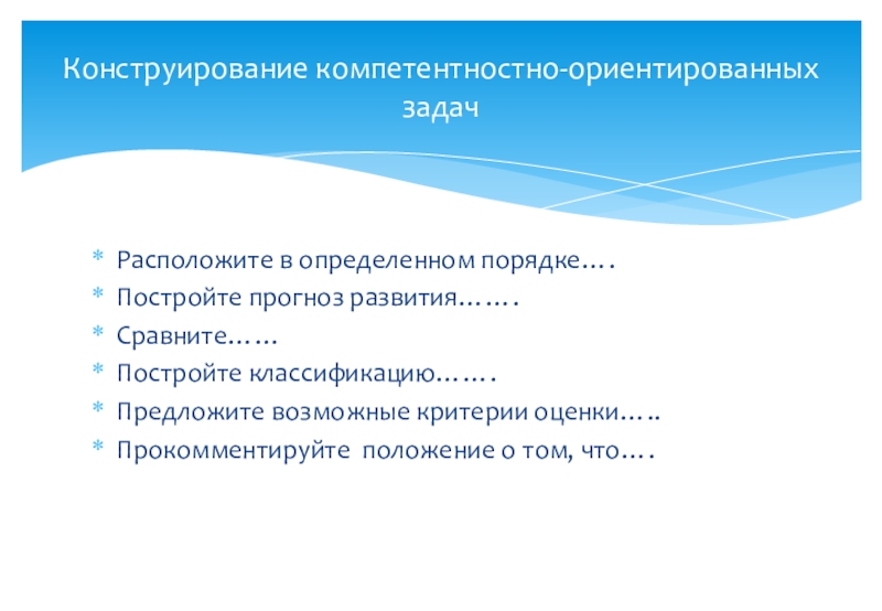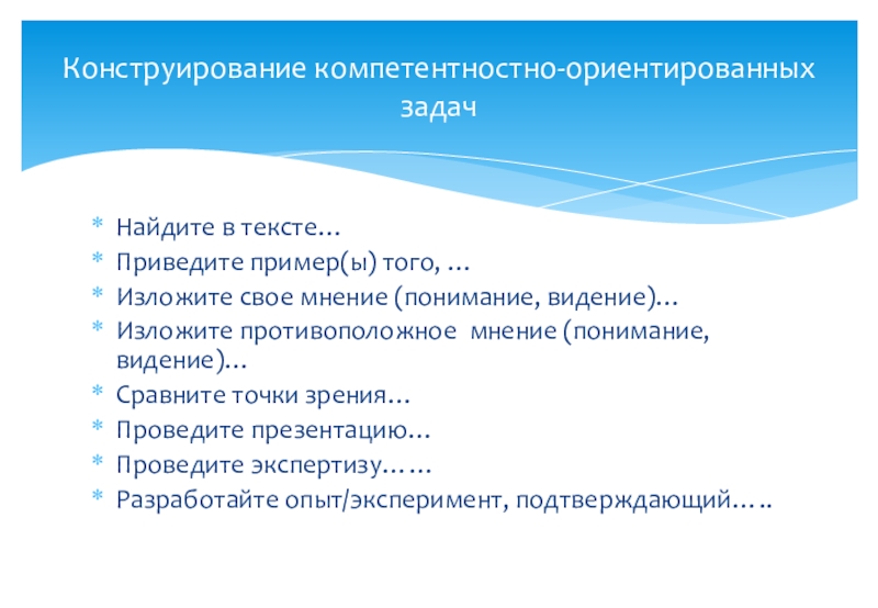 Конструирование компетентностно-ориентированных заданий (предлагаемые формулировки задач)