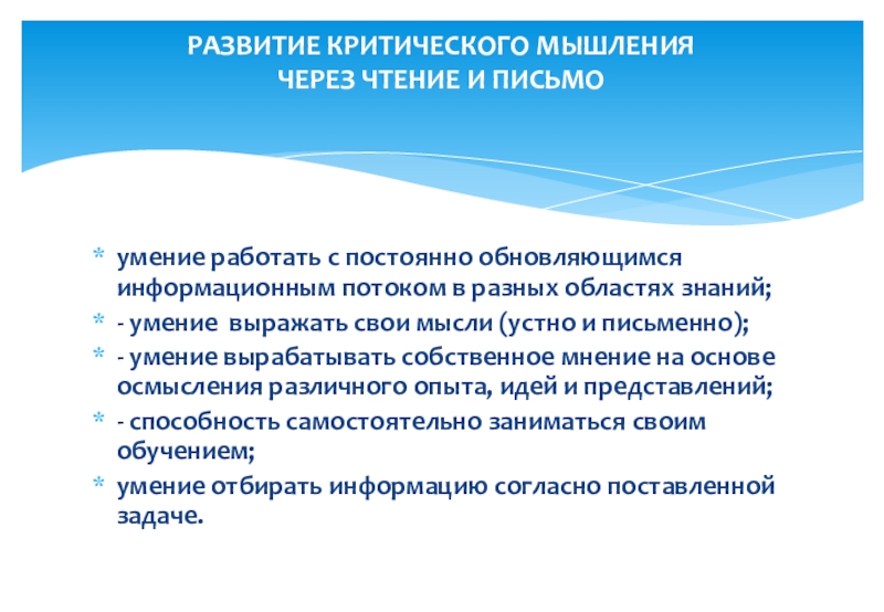 РАЗВИТИЕ КРИТИЧЕСКОГО МЫШЛЕНИЯ