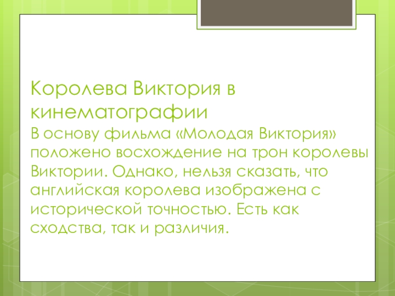 Презентация, доклад Королева Виктория в исторических хрониках и художественных фильмах
