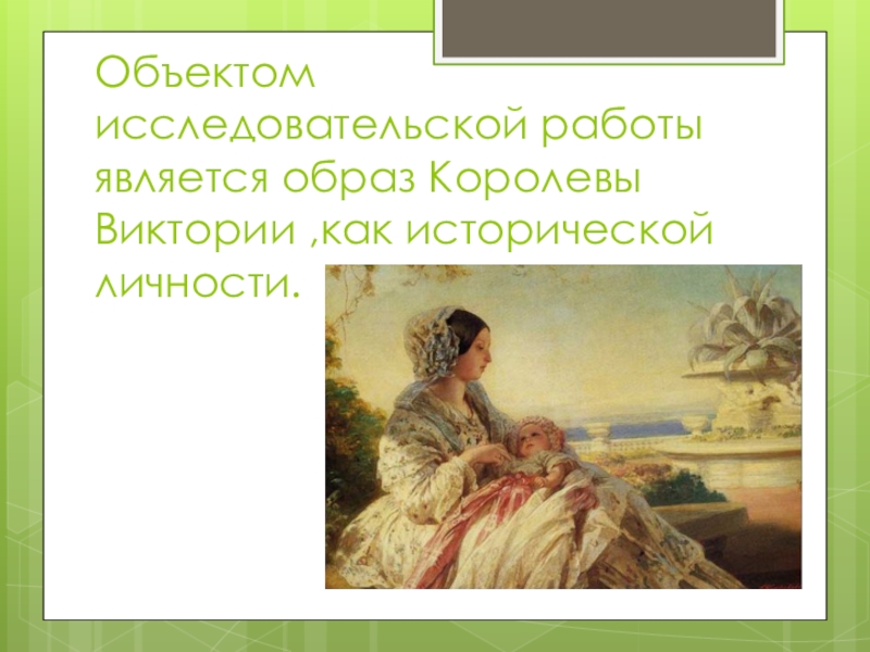 Слайд 6Объектом исследовательской работы является образ Королевы Виктории ,как исторической личности.