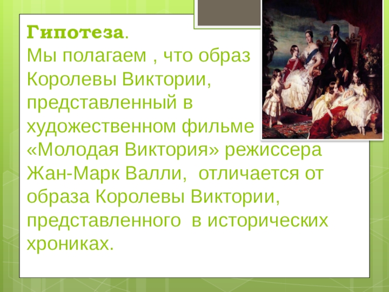Слайд 3Гипотеза. Мы полагаем , что образ Королевы Виктории, представленный в художественном фильме