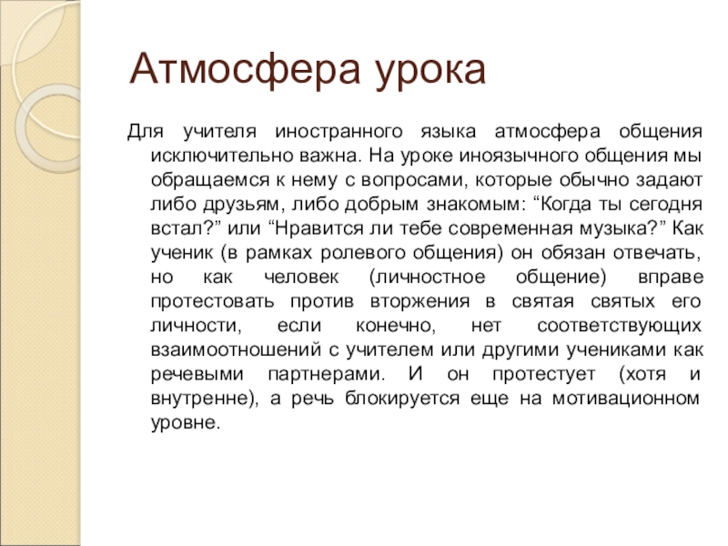 Для учителя иностранного языка атмосфера общения исключительно важна. На