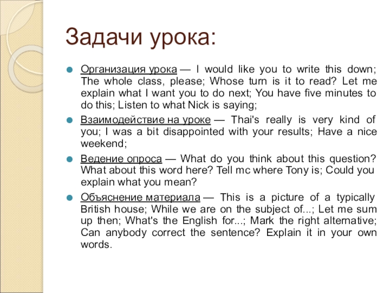 Объяснение материала — This is a picture of a typically British house; While we are on the subject of...; Let me sum up then; What's the English for...; Mark the right alternative; Can anybody correct the sentence? Explain it in your own words.