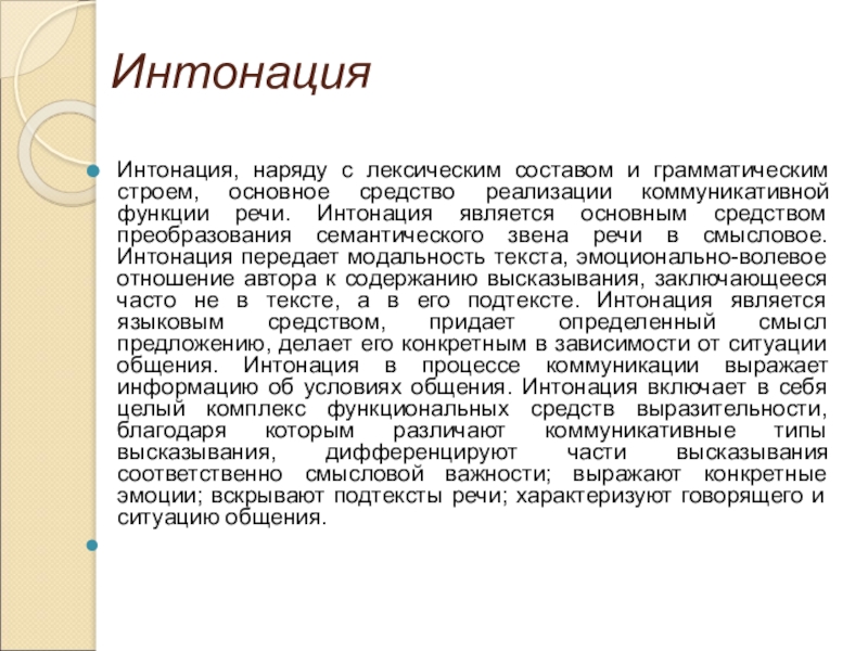 Интонация, наряду с лексическим составом и грамматическим строем, основное средство реализации
