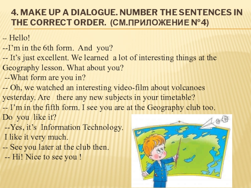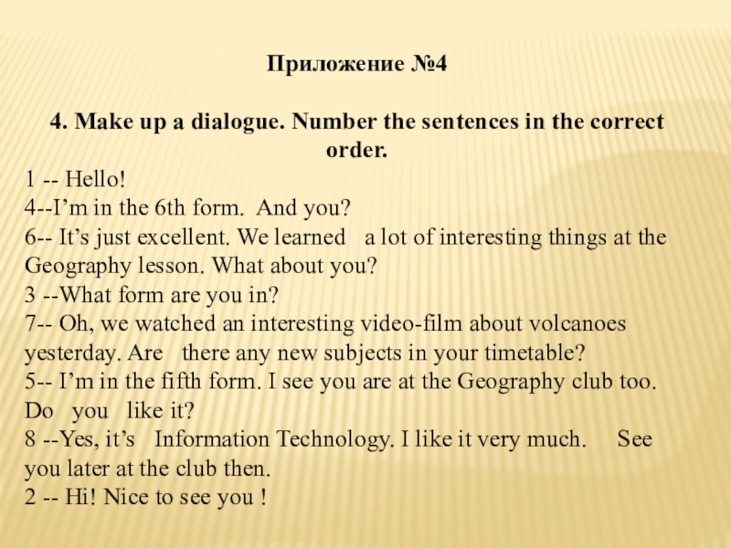 Слайд 74. Make up a dialogue. Number the sentences in the correct
