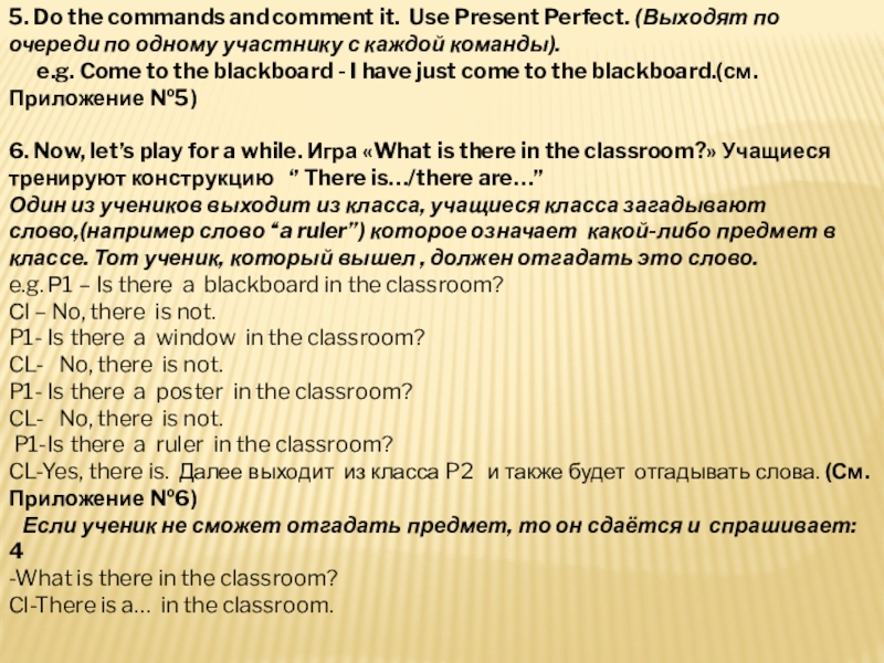 e.g. Come to the blackboard - I have just come to the blackboard.(см.Приложение №5)
